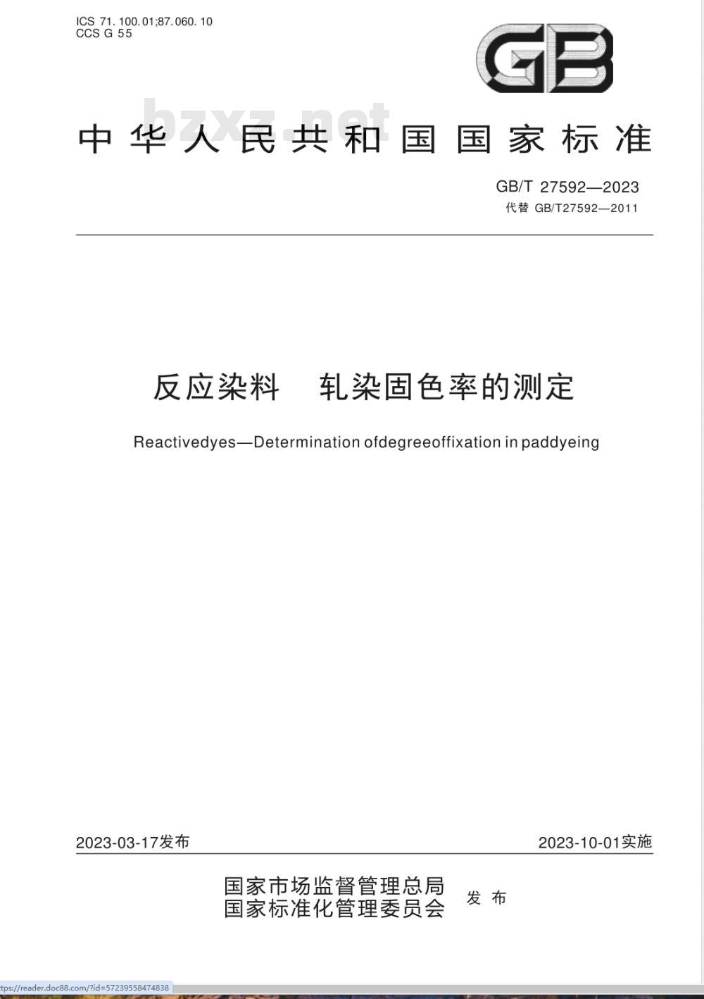 - GB/T 27592-2023反应染料 轧染固色率的测定