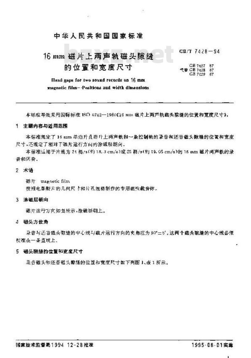 - GB/T 7428-1994 16mm 磁片上两声轨磁头隙缝的位置和宽度尺寸