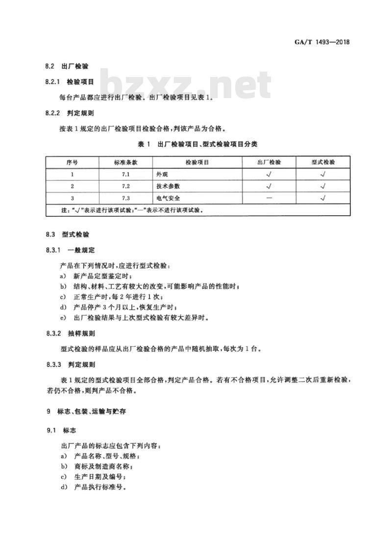 表1规定的型式检验项目全部合格,判定产品合格。若有不合格项目,允许调整二次后重新检验,若仍不合格,则判产品不合格。9标志、包装、运输与贮存