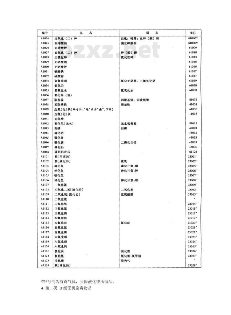 GA57-92剧毒物品分级、分类与品名编号3第一类A级无机剧毒物品