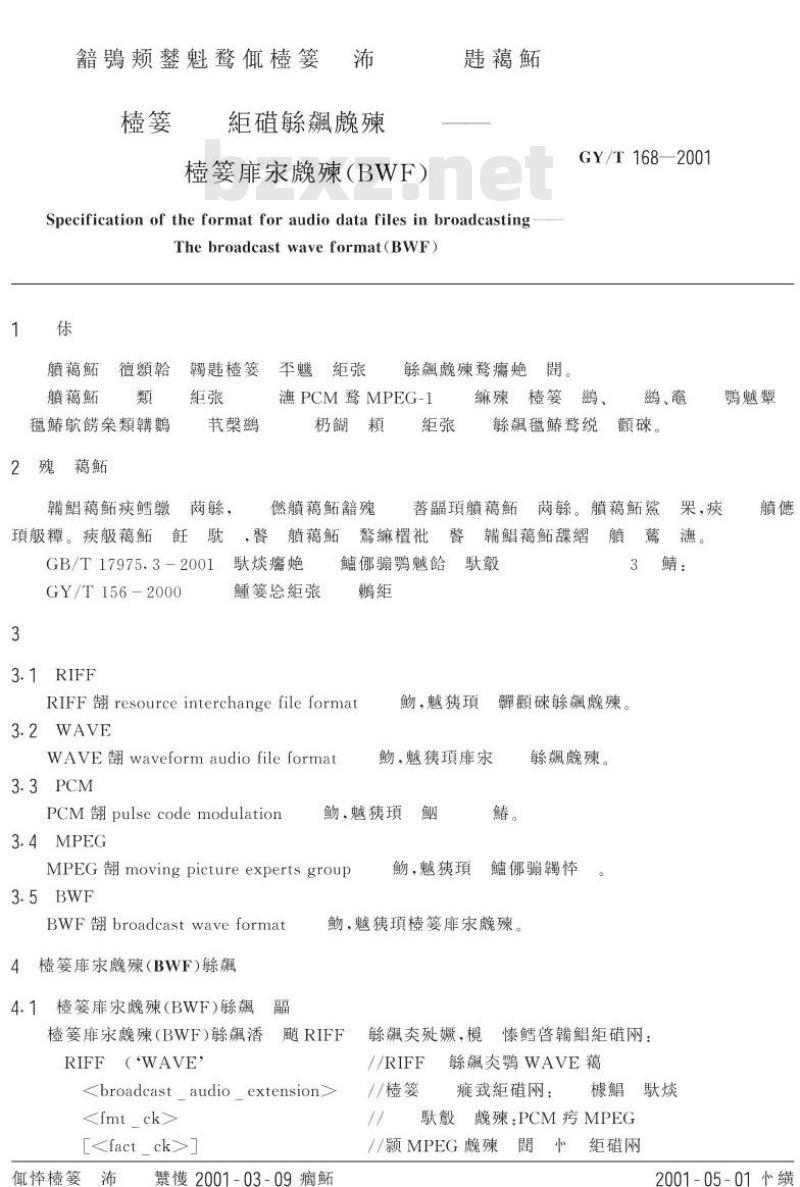 - GY/T 168-2001 广播音频数据文件格式规范一广播波形格式(BWF)