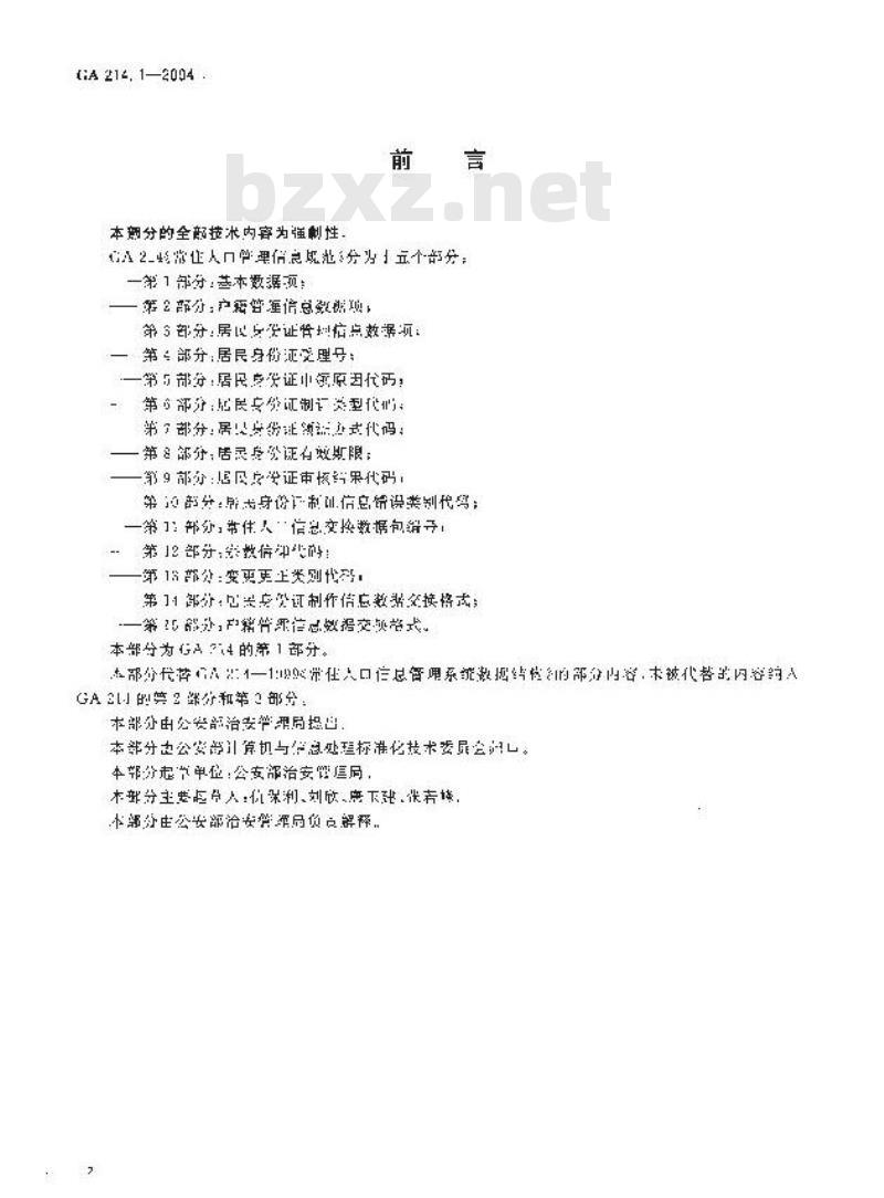 - GA 214.1-2004 常住人口管理信息规范第1部分:基本数据项