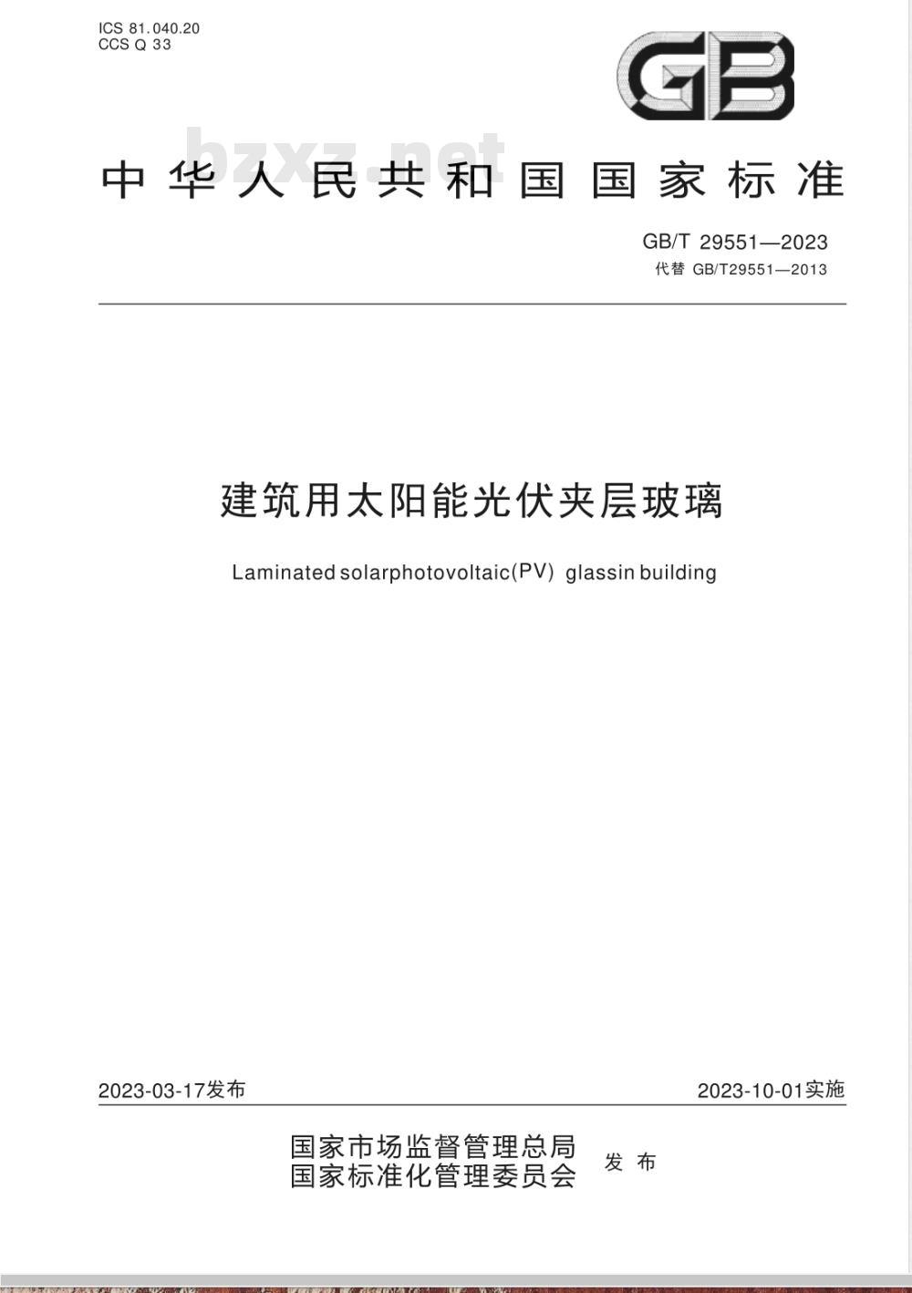 - GB/T 29551-2023建筑用太阳能光伏夹层玻璃