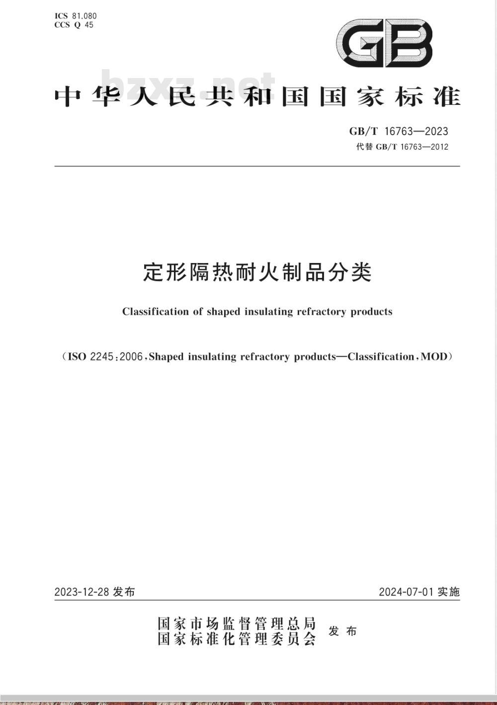 Classification of shaped insulating refractory products(ISO 2245 : 2006 ,Shaped insulating refractory products—Classification , MOD)2023-12-28发布