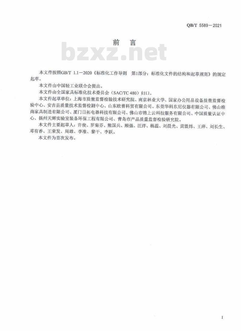 本文件由中国轻工业联合会提出。本文件由全国家具标准化技术委员会(SAC/TC480)归口。本文件起草单位:上海市质量监督检验技术研究院、南京林业大学、国家办公用品设备质量监督检验中心、安吉县质量技术监督检测中心、山东欧普科贸有限公司、东莞华科东尼仪器有限公司、佛山维尚家具制造有限公司、厦门日拓电器科技有限公司、佛山市锦上云科技服务有限公司、中国质量认证中心、扬州天辉实验室装备环保工程有限公司、青岛市产品质量监督检验研究院。本文件主要起草人:许俊、罗菊芬、熊国兵、顾强、汪洋、杨蕊、刘晨光、黄震炜、王萍、刘长生、邓有香、王荣发、周雄、李准、黎干、李跃。本文件为首次发布。