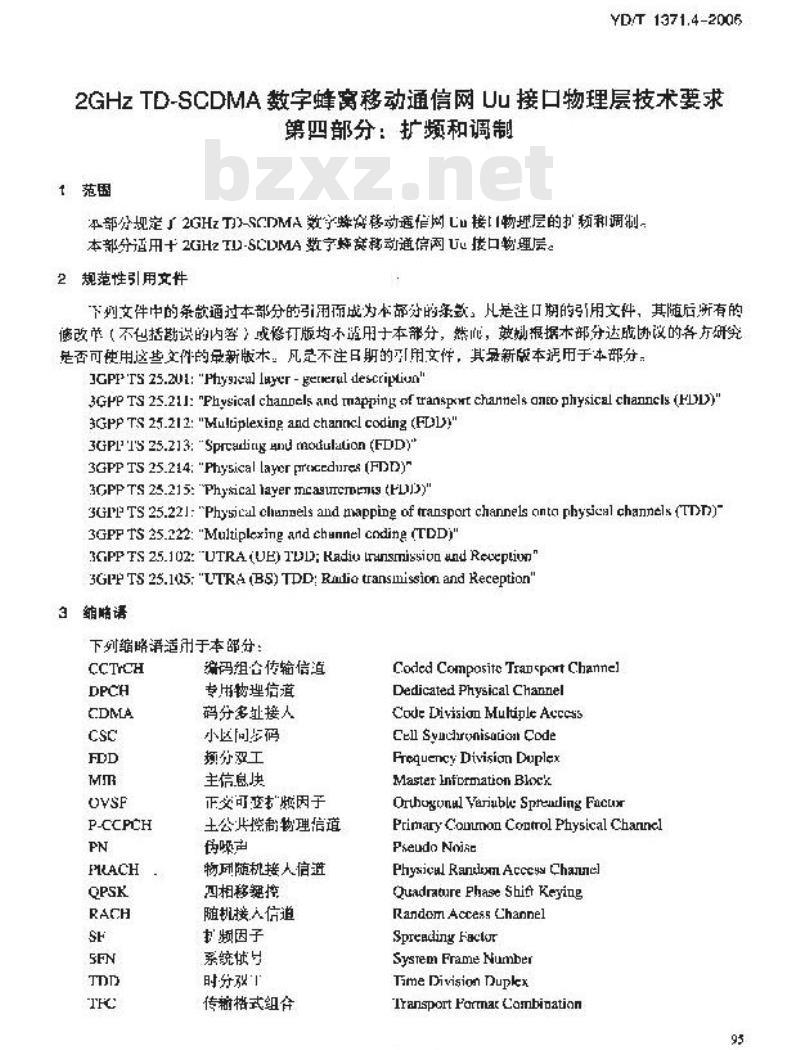 YD/T 1371.4适用于2GHz TD-SCDMA数字蜂窝移动通信网Uu接口物理层。
