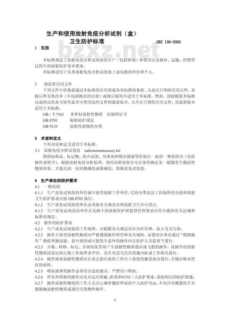 - GBZ 136-2002 生产和使用放射免疫分析试剂(盒)卫生防护标准