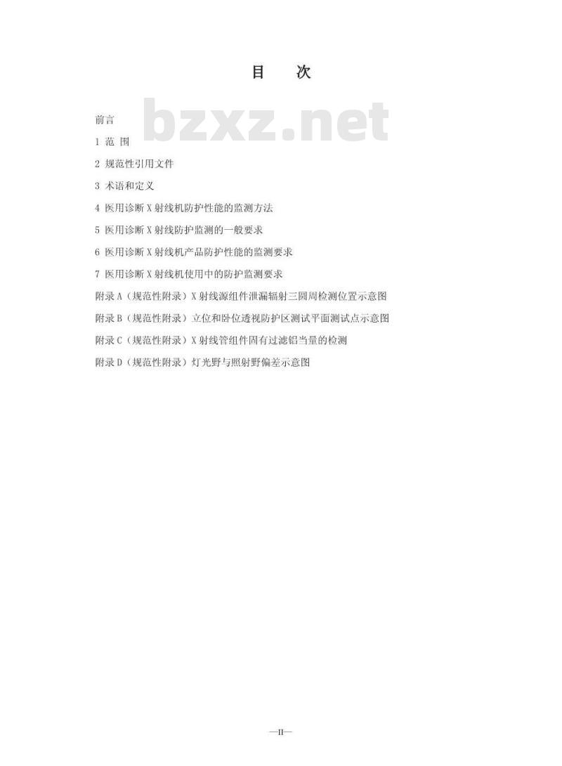 本标准规定了医用诊断X射线机(不包括C形臂X射线机)防护性能的检测方法,规定了医用诊断X射线机产品防护性能检测要求,以及医用诊断X射线机使用中的防护监测要求。本标准适用于医用诊断X射线机的生产和使用。本标准不适用于介入放射学、血管造影等特殊检查和X射线CT检查。