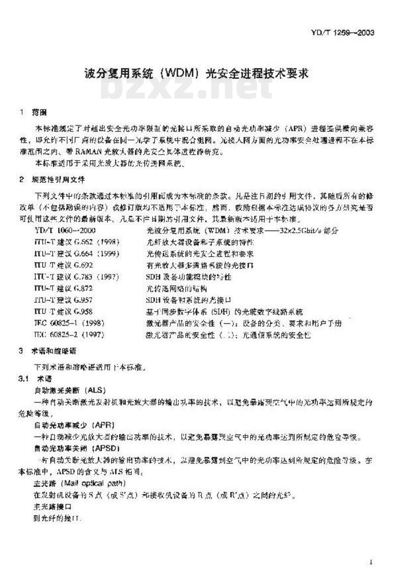 - YD/T 1259-2003 波分复用系统(WDM)光安全进程技术要求