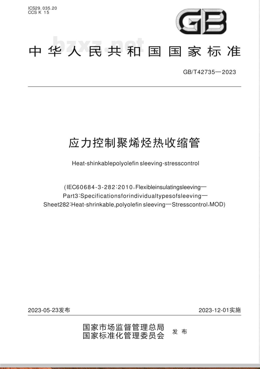- GB/T 42735-2023应力控制聚烯烃热收缩管