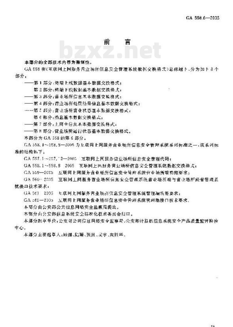 GA 558.6-2005.Data interchange format for information security administration system of internet service business site-Part 6: Basie data interchange format of message.