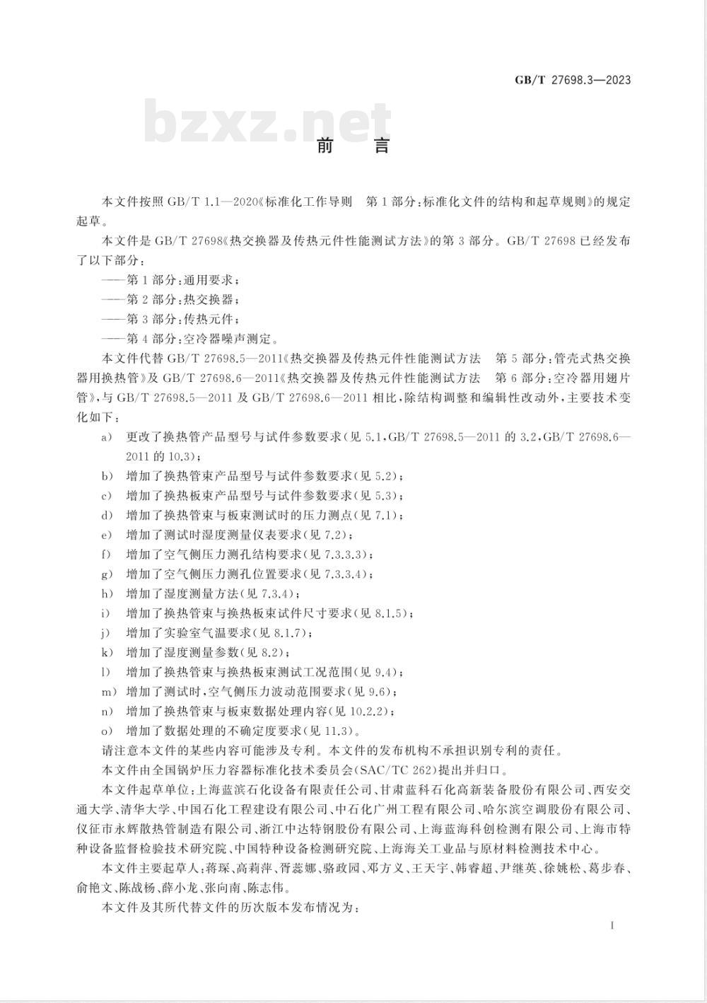 -2011年首次发布为GB/T27698.3一2011《热交换器及传热元件性能测试方法第3部分:板式热交换器》,本次为第一次修订;GB/T27698.5,2011年首次发布;—GB/T27698.6,2011年首次发布。I