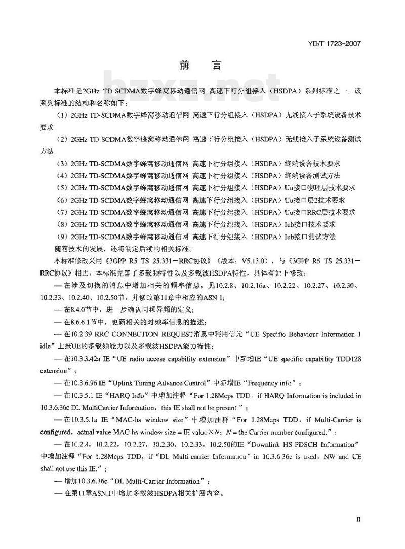 YD/T 1723适用于2GHz TD-SCDMA数字蜂窝移动通信网高速下行分组接入(HSDPA)Uu接口RRC层。