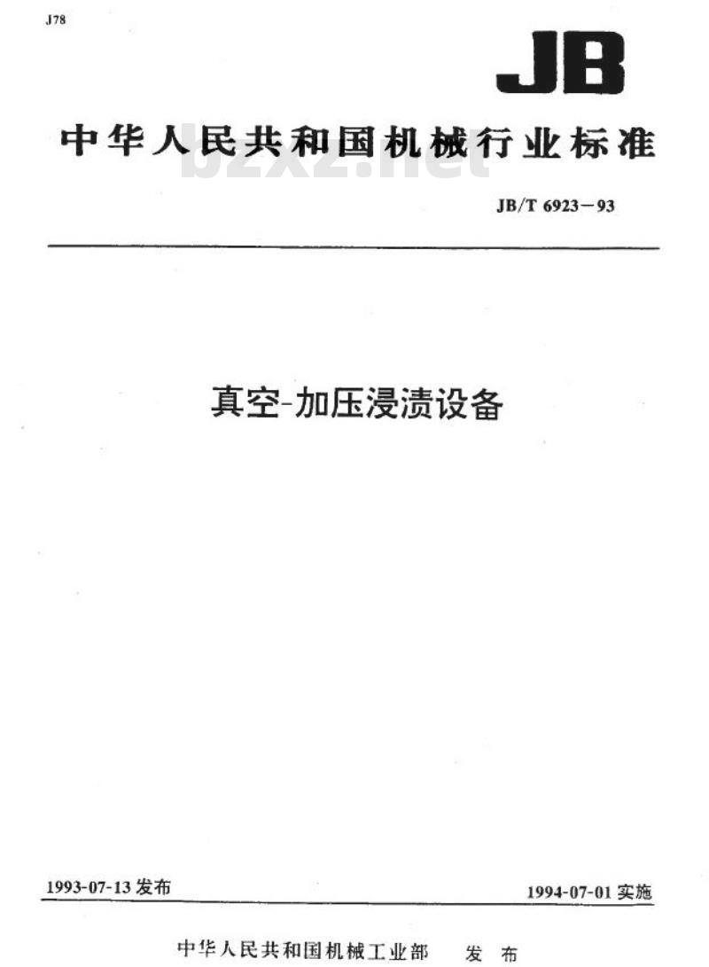 - JB/T 6923-1993 真空加压浸渍设备