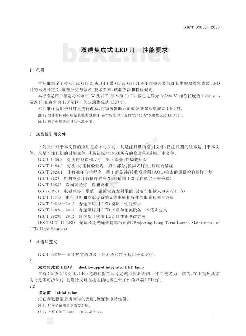 - GB/T 39008-2020 双端集成式LED灯性能要求