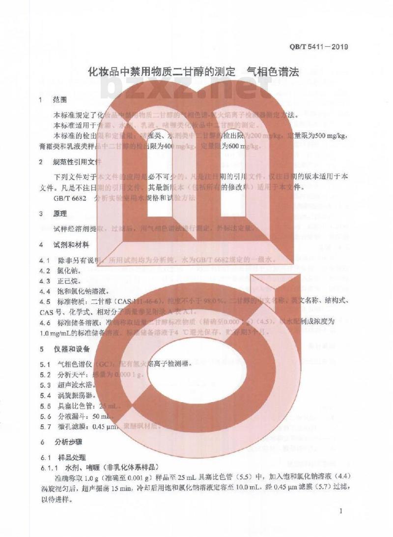 QB/T 5411-2019.Determination of prohibited diethylene glycol in cosmetics-Gas chromatography.