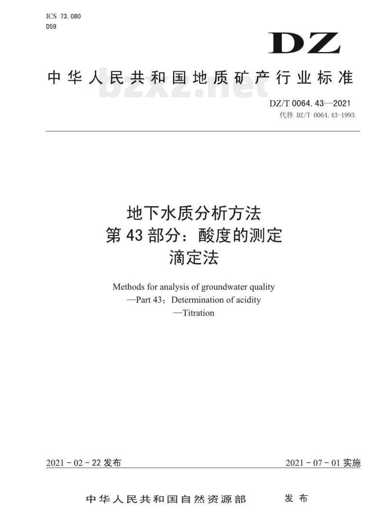 - DZ/T 0064.43-2021 地下水质分析方法 第43部分:酸度的测定滴定法
