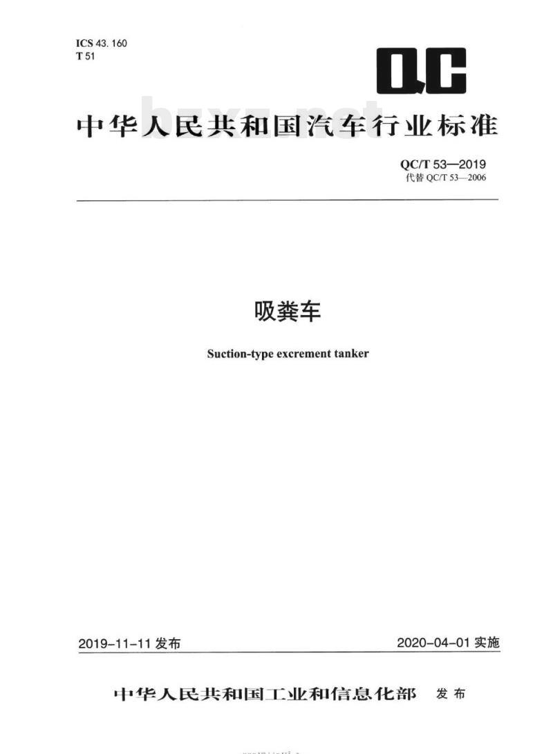 QC/T 53适用于定型二类汽车底盘改装的吸粪车。