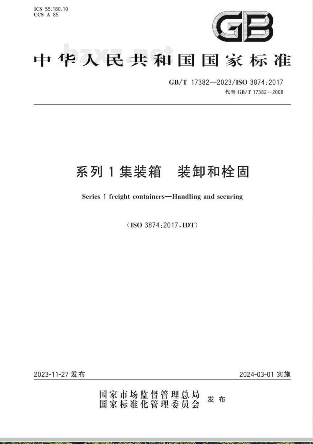 - GB/T 17382-2023系列1集装箱 装卸和栓固
