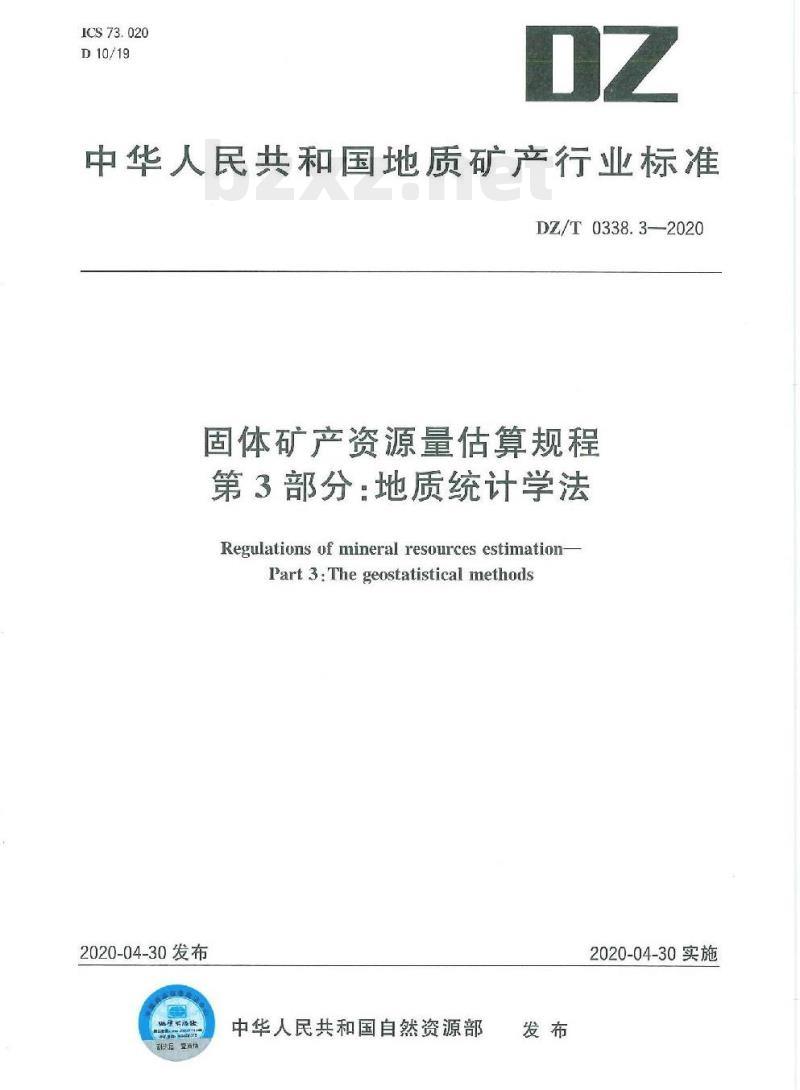 - DZ/T 0338.3-2020 固体矿产资源量估算规程 第3部分:地质统计学法