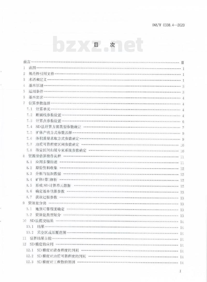 DZ/T 0338的DZ/T 0338.4规定了SD储量计算法(简称SD法)资源量估算的基本原理、适用条件、基本要求、估算参数选择、估算操作流程、资源量分类、SD法计算结果、自检、SD精度的应用等基本内容和要DZ/T 0338.4适用于运用SD法对固体矿产地质勘查和开发利用中的资源量估算。