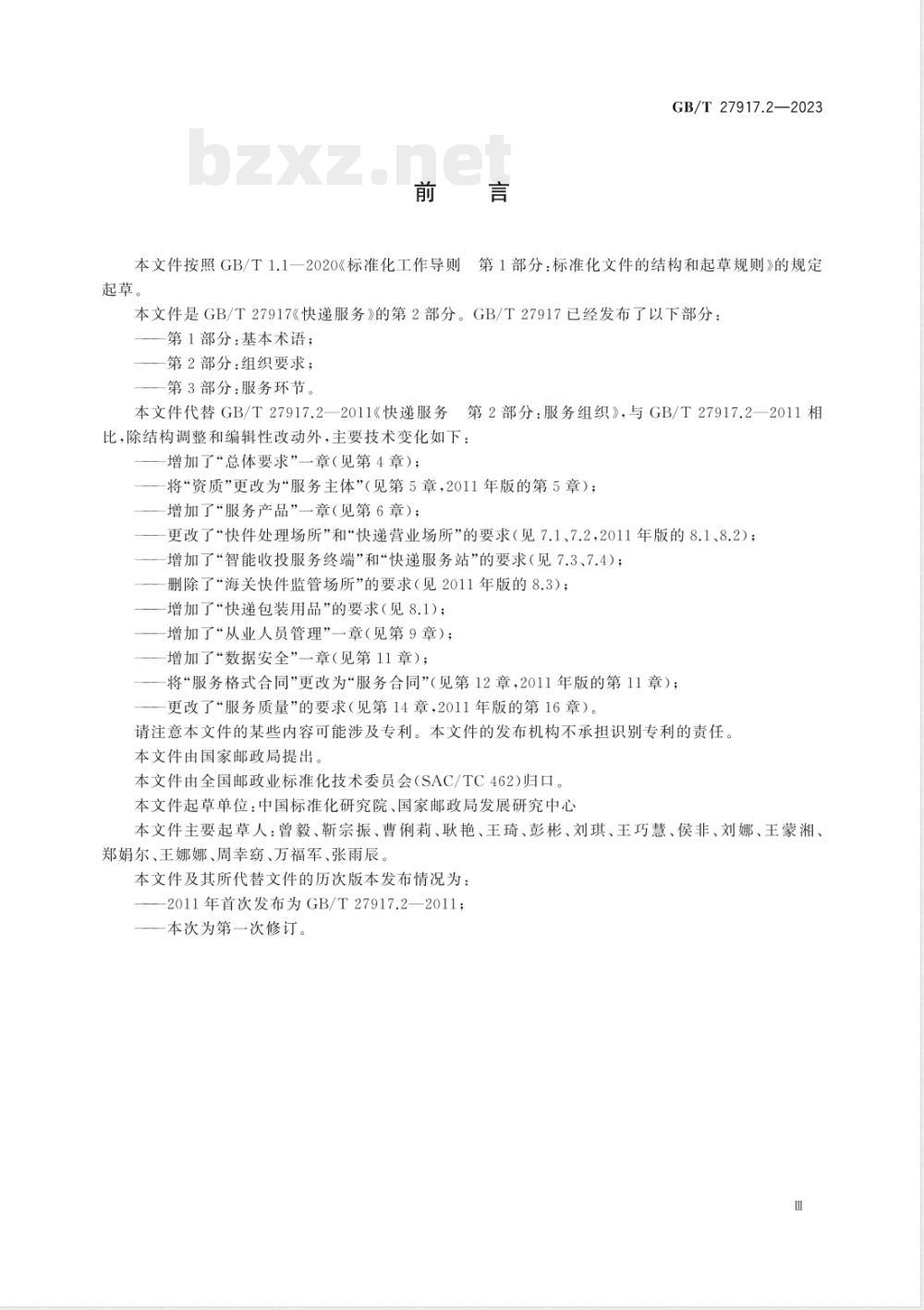 本文件由全国邮政业标准化技术委员会(SAC/TC462)归口。本文件起草单位:中国标准化研究院、国家邮政局发展研究中心本文件主要起草人:曾毅、靳宗振、曹俐莉、耿艳、王琦、彭彬、刘琪、王巧慧、侯非、刘娜、王蒙湘、郑娟尔、王娜娜、周幸、万福军、张雨辰。本文件及其所代替文件的历次版本发布情况为:—2011年首次发布为GB/T27917.2一2011:一本次为第一次修订。