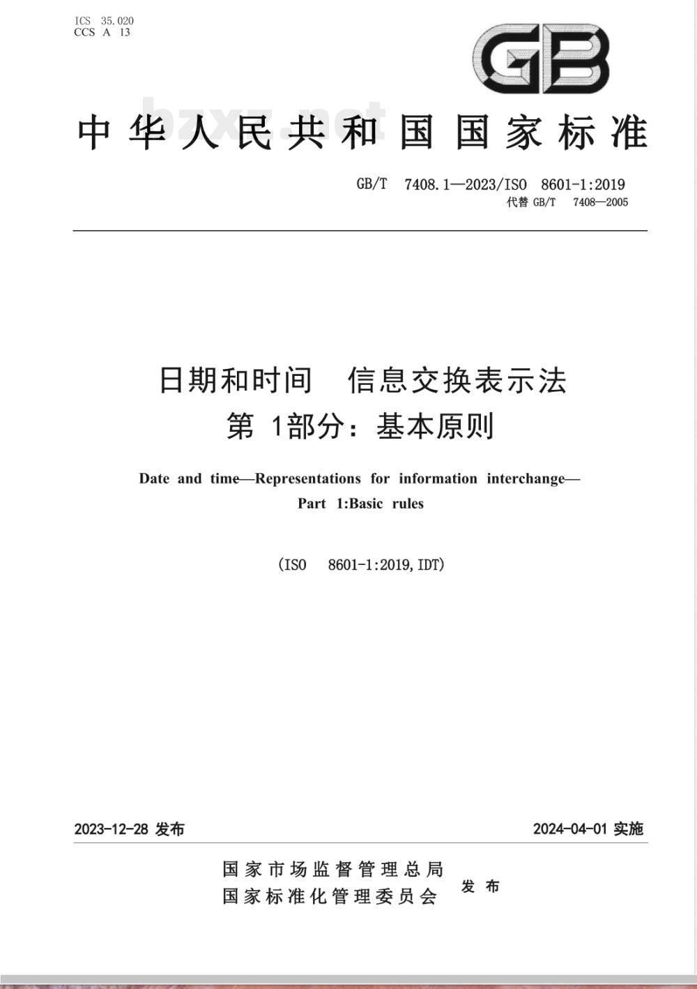 - GB/T 7408.1-2023日期和时间 信息交换表示法 第1部分:基本原则