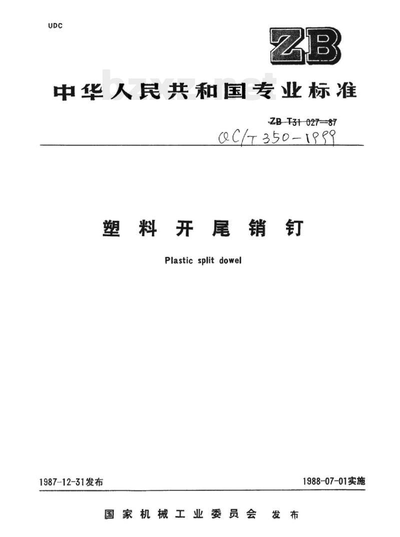 QC/T 350适用于汽车上固定装饰件的塑料开尾销钉。