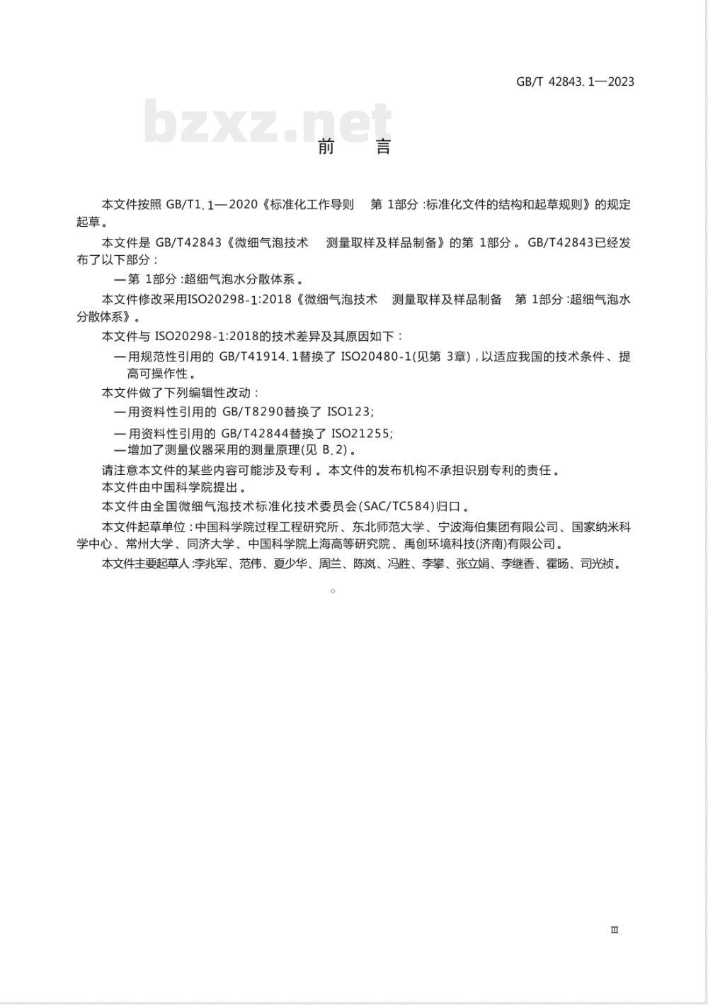 - GB/T 42843.1-2023微细气泡技术 测量取样及样品制备 第1部分:超细气泡水分散体系