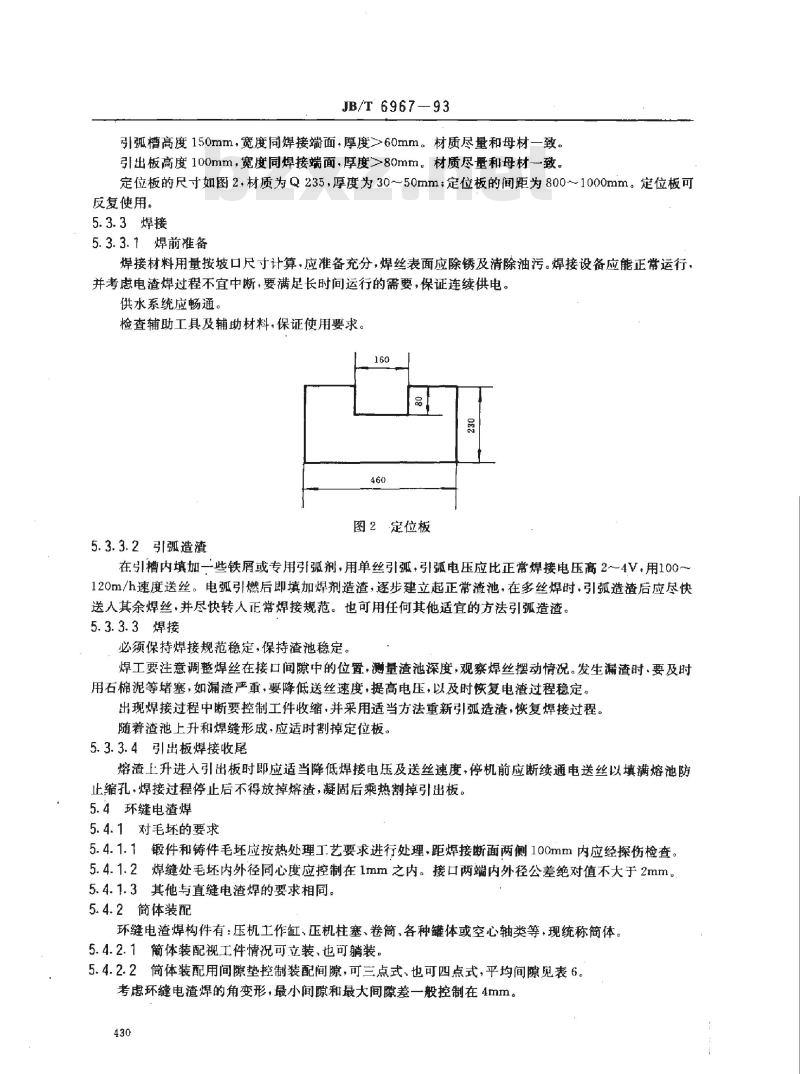 如发生焊接过程中断,也应控制简体收缩变形,并采用适当方式重新建立电渣过程。5.4.4.4焊接收尾