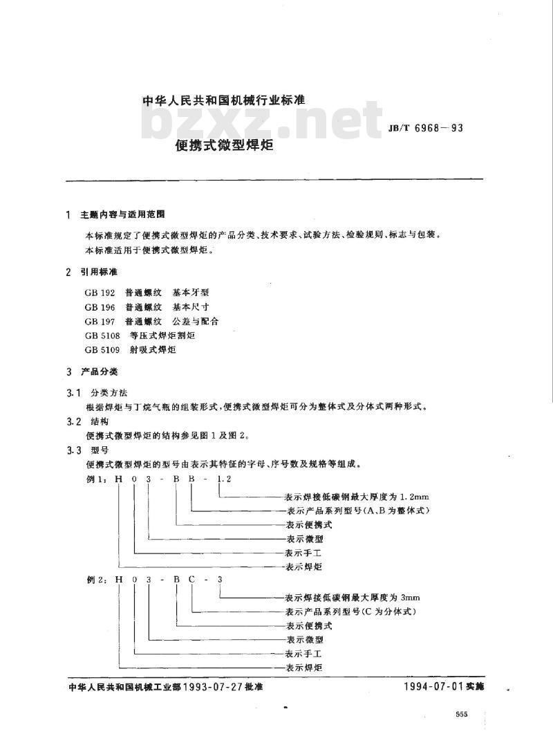 - JB/T 6968-1993 便携式微型焊炬