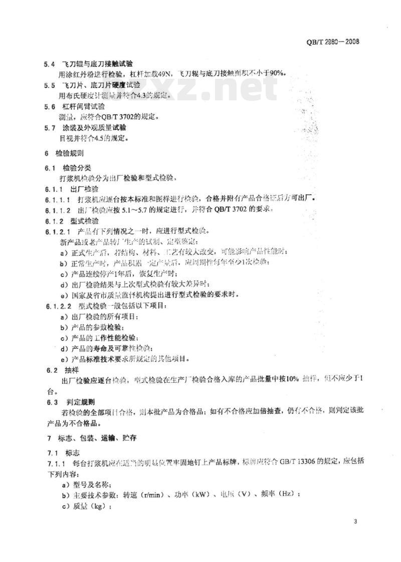 打浆机检验分为出厂检验和型式检验QB/T2980-2008