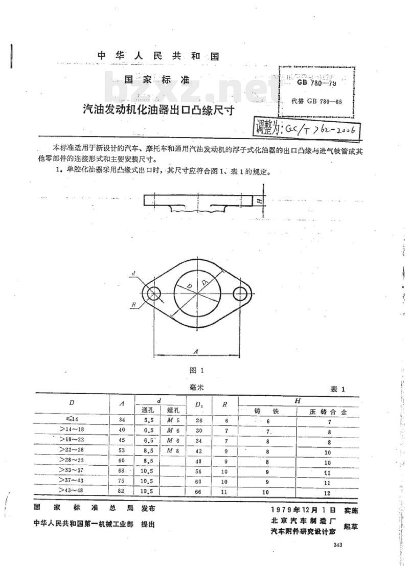 - QC/T 762-2006 汽油发动机化油器出口凸缘尺寸