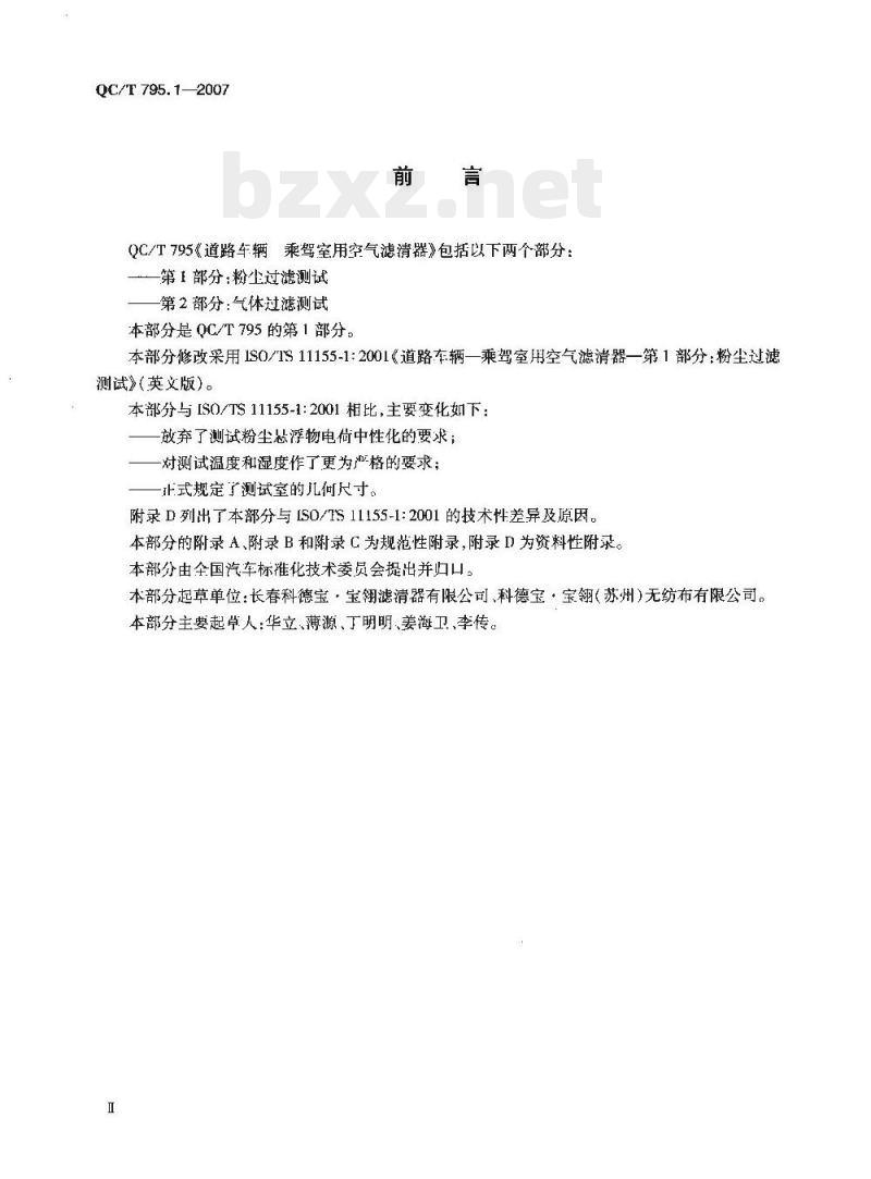 - QC/T 795.1-2007 道路车辆乘驾室用空气滤清器第1部分:粉尘过滤测试