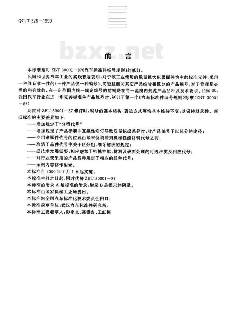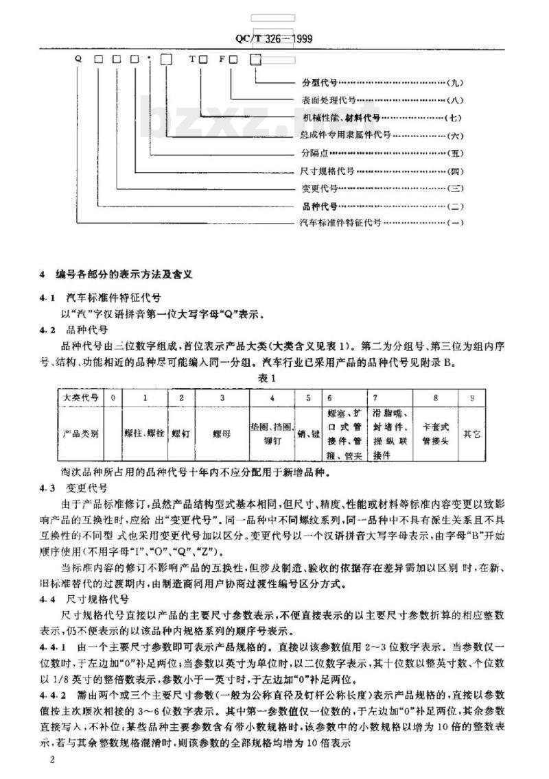 QC/T 326规定了汽车、摩托车用紧固件等标准产品的编号规则.