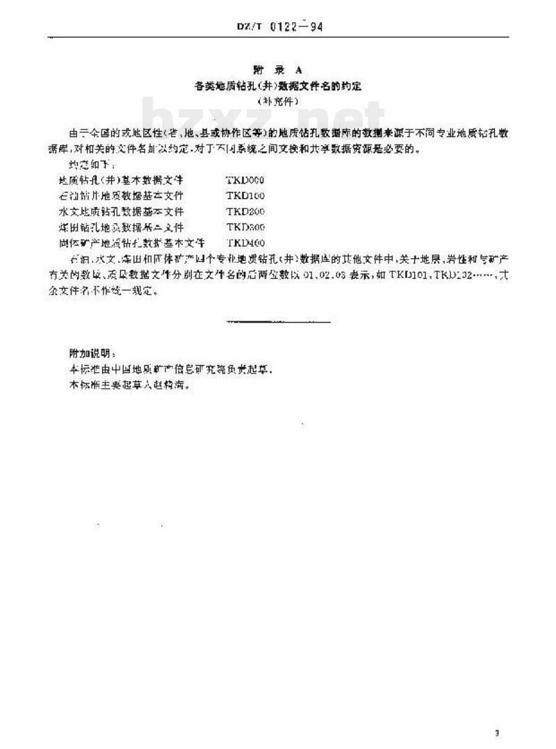 - DZ/T0126-1994 固体矿产钻孔地质数据文件格式