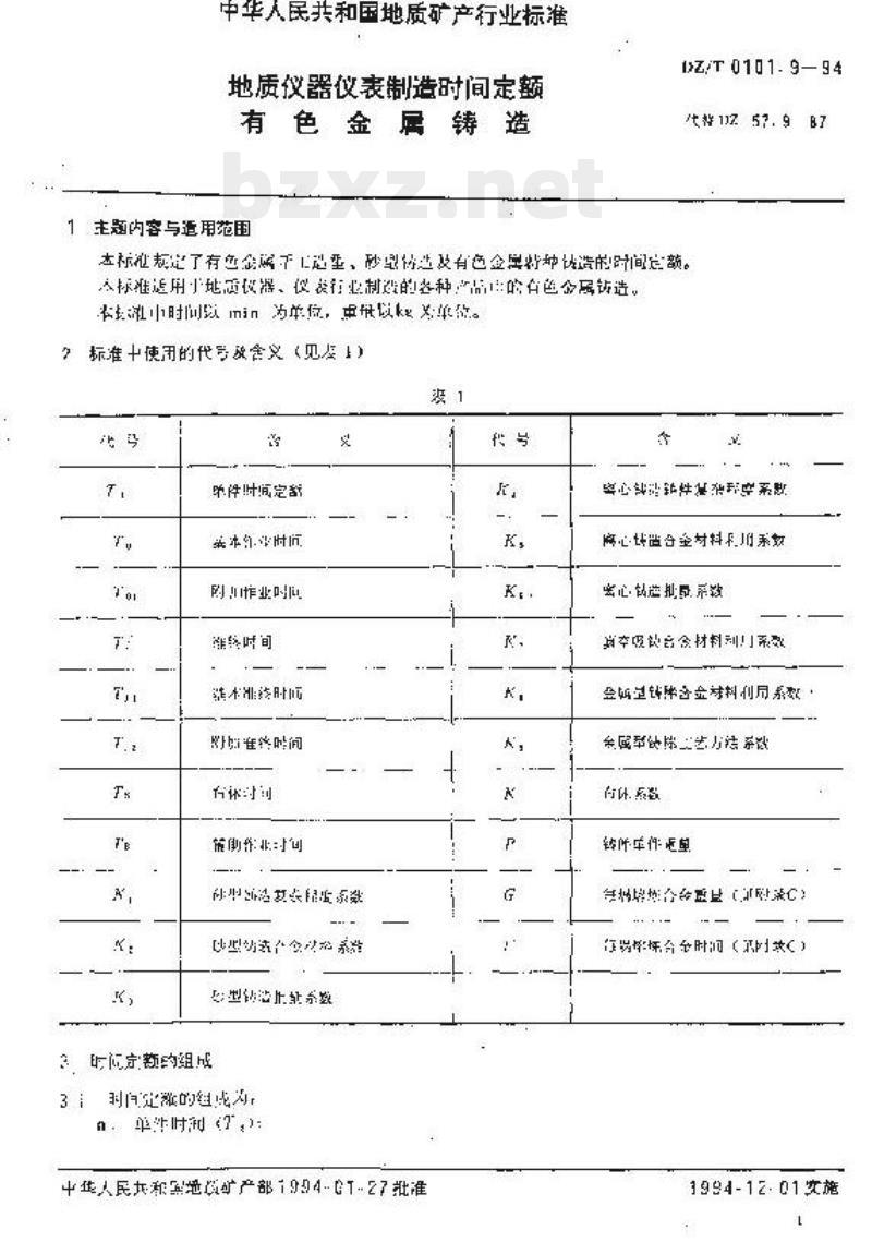 - DZ/T 0101.9-1994 地质仪器仪表制造时间定额有色金属铸造