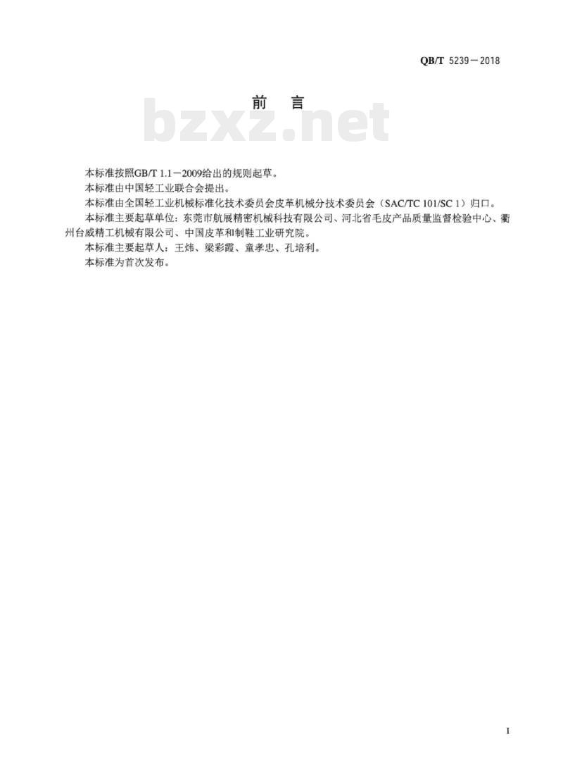 本标准由全国轻工业机械标准化技术委员会皮革机械分技术委员会(SAC/TC101/SC1)归口。本标准主要起草单位:东莞市航展精密机械科技有限公司、河北省毛皮产品质量监督检验中心、衢州台威精工机械有限公司、中国皮革和制鞋工业研究院。本标准主要起草人:王炜、梁彩霞、童孝忠、孔培利。本标准为首次发布。