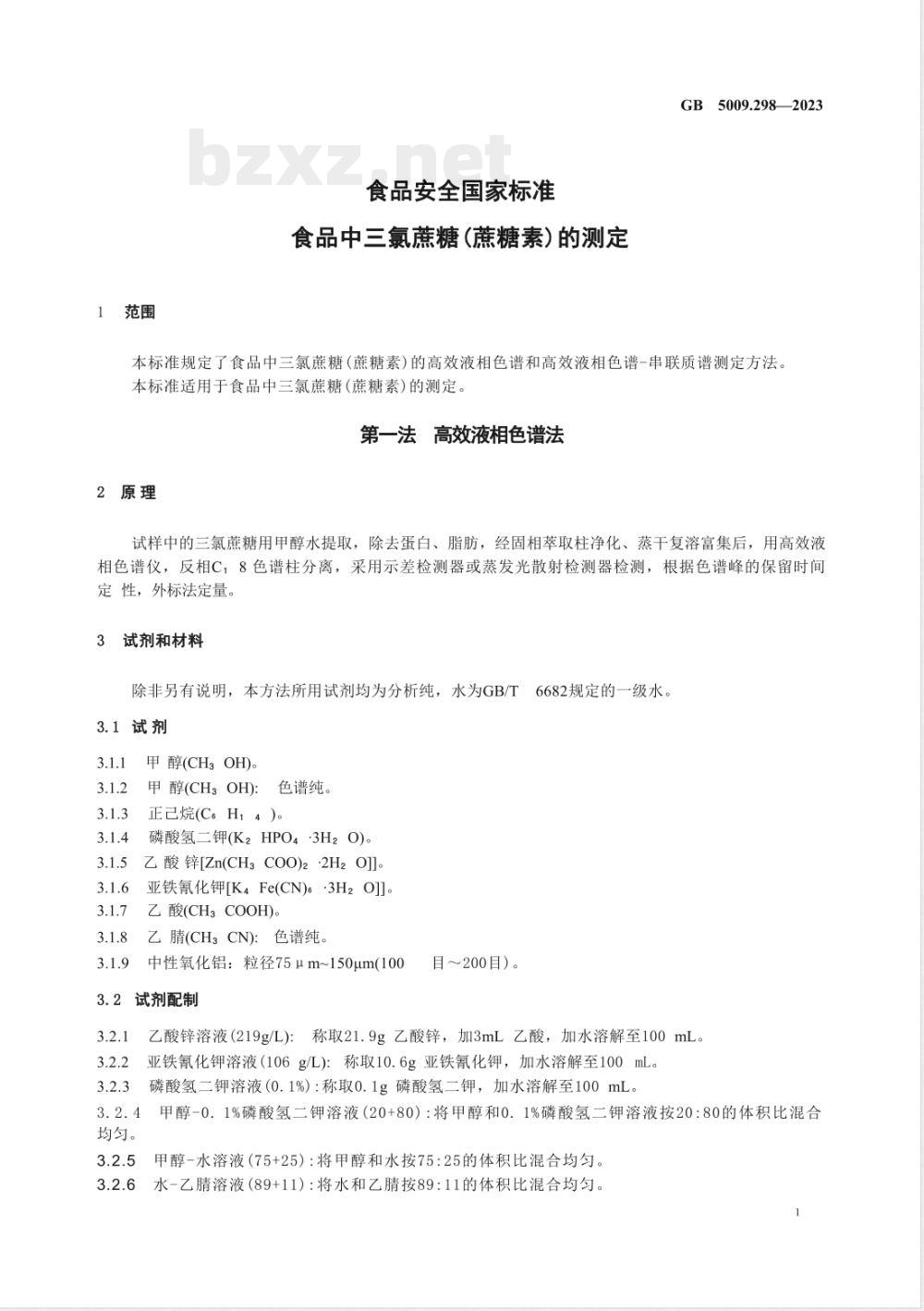 - GB 5009.298-2023食品安全国家标准 食品中三氯蔗糖(蔗糖素)的测定