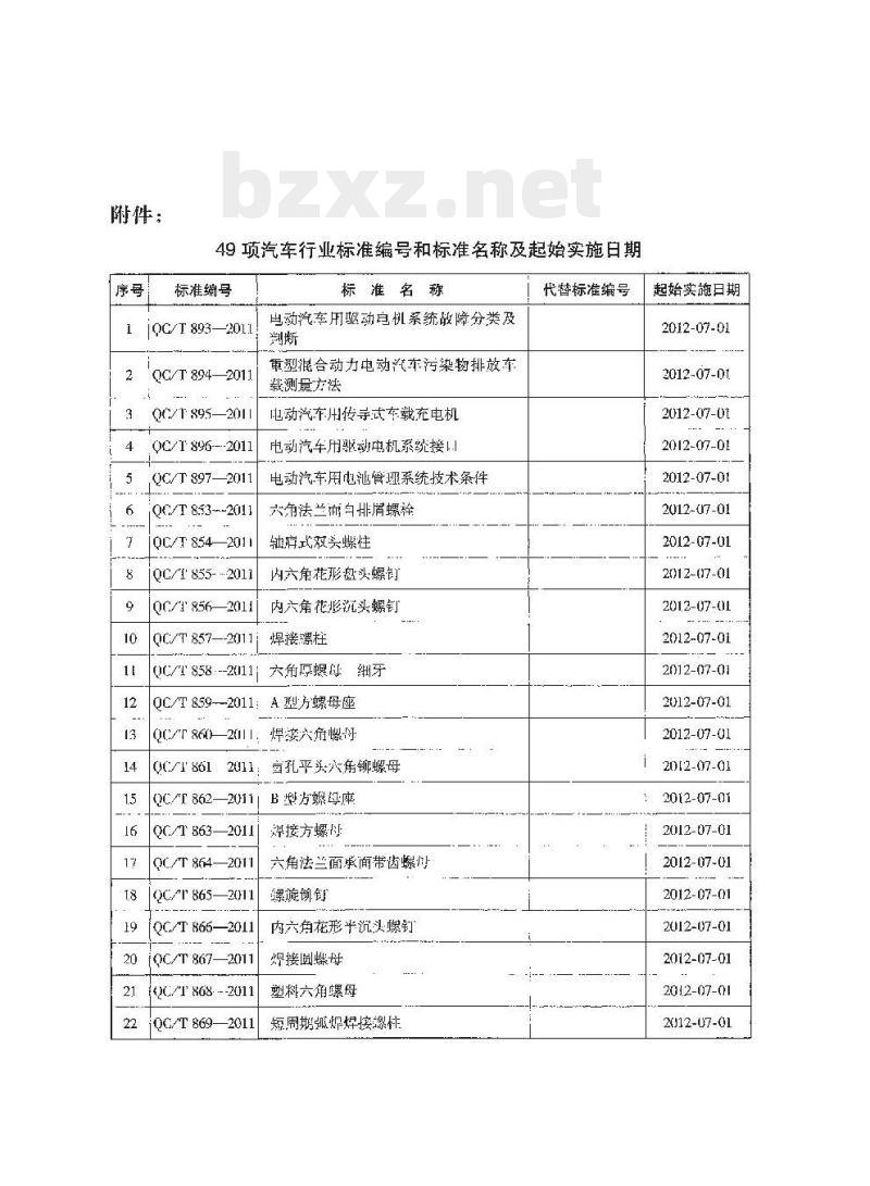 附件:49项汽车行业标淮编导种标准名称及起始实施日期中华人民共和国工业和信息化部二0一年十二月二十日