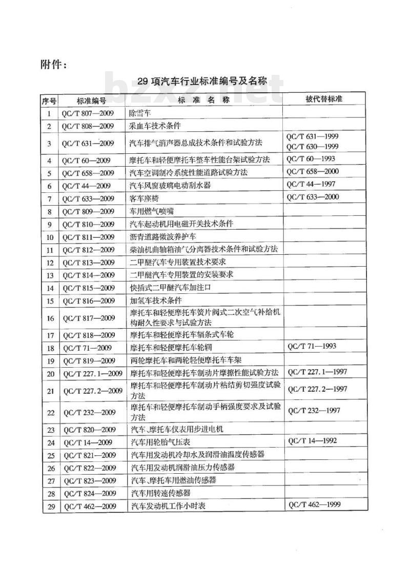 以上汽车、制药装备、包装行业标准由中国计划出版社出版,纺织行业标准由中国标准出版社出版。附件:29项汽车行业标准编号及名称中华人民共和国工业和信息化部二〇〇九年十一月十七日