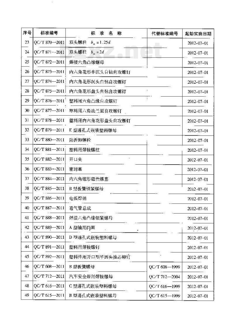 附件:49项汽车行业标准编号和标准名称及起始实施日期中华人民共和国丁业利信息化部二〇一一年十二月二十E