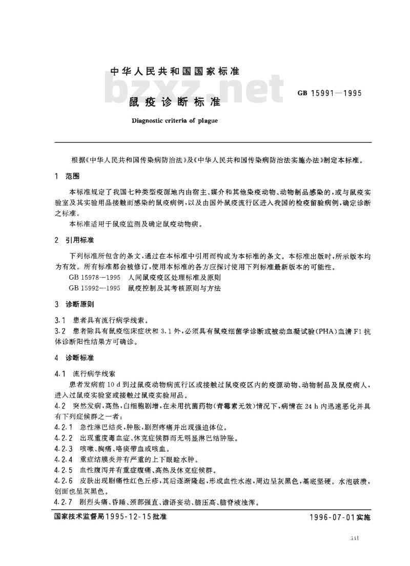 - GB 15991-1995 鼠疫诊断标准