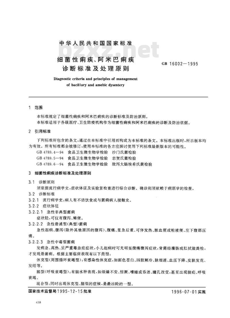 - GB 16002-1995 细菌性痢疾、阿米巴痢疾诊断标准及处理原则