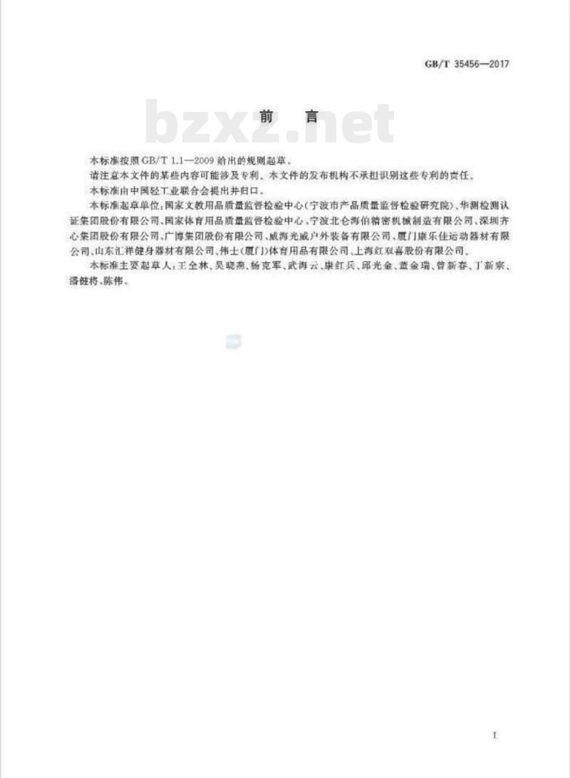 请注意本文件的某些内容可能涉及专利,本文件的发布机构不承扭识别这些专利的费本标准由中国轻工业联合会提出并归口,本标准起草单位:同家文教用品质量监督检验中心(宁波市产品质量监督检验研究院)、华测检测认证集团股份有限公司、国家体育用品质量监督检验中心宁波北仑海伯销密机械制造有限公司、深圳齐心荣团股份有限公司、广博集团股份有限公司、威海光威户外装备有限公司、厦门康乐佳运动器材有限公司、山东汇祥健身器材有限公司、伟士(厦门)体育用品有限公司、上海红双喜股份有限公司、本标准主要起草人:王全林、昊晓燕、杨克军、武海云、康红兵、邱光金、益金瑞、曾新春、丁新宗、潘将、陈伟,