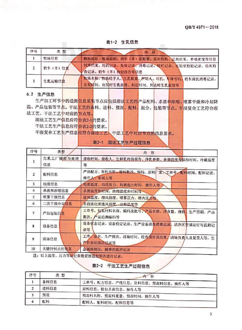 QB/T 4971适用于乳粉企业生产的嬰幼儿配方乳粉产品质量安全信息追溯管理与信息共享(含进口产品)