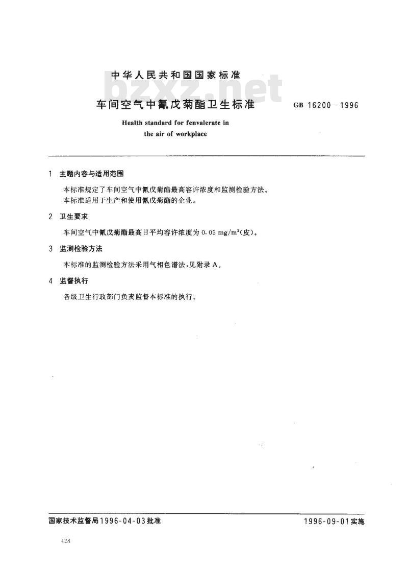 - GB 16200-1996 车间空气中氰戊菊酯卫生标准