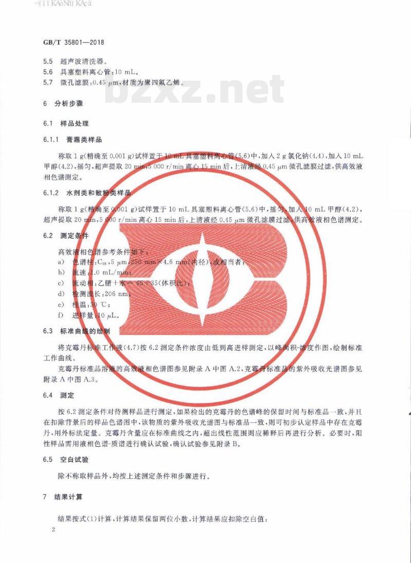 GB/T 35801适用于膏霜类.水剂类、散粉类化妆品中克w丹的测定。