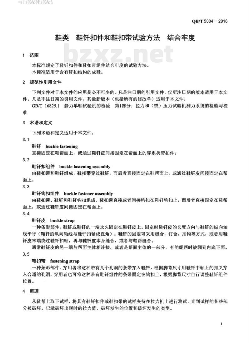 - QB/T 5004-2016 鞋类鞋钎扣件 和鞋扣带试验方法结合牢度
