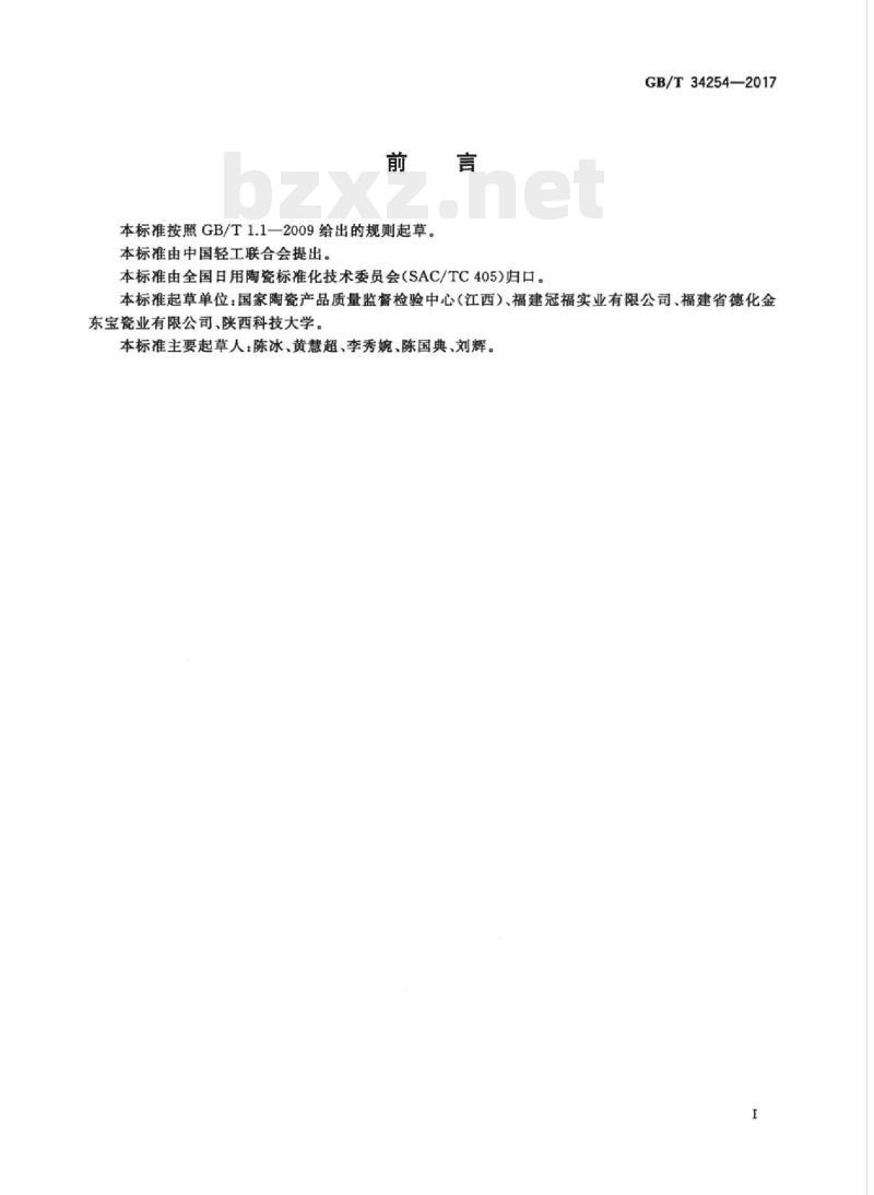 本标准按照GB/T1.1一2009给出的规则起草。本标准由中国轻工联合会提出。本标准由全国日用陶瓷标准化技术委员会(SAC/TC405)归口。GB/T34254—2017